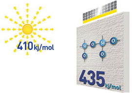 Ç÷¡Æ¼³ÑÄÚÆ®´Â ºÐÀÚ¿¡ 435 kj/molÀÇ °áÇÕ ¿¡³ÊÁö¸¦ °¡Áö´Â si-o °áÇÕÀ» Æ÷ÇÔÇÕ´Ï´Ù. si-o °áÇÕÀº Àڿܼ± ¿¡³ÊÁö 410 kj/molÀ» »óȸÇÏ´Â ¾ÈÁ¤ÀûÀÎ °áÇÕ·ÂÀ» °¡Áö°í Àֱ⶧¹®¿¡ ¿Üº®À縦 ¾ÈÀüÇÏ°Ô º¸È£ ÇÒ ¼ö ÀÖ½À´Ï´Ù. ¶ÇÇÑ, µµÀ帷ÀÇ Ç°ÁúÀ» 15³â º¸ÁõÇÕ´Ï´Ù.